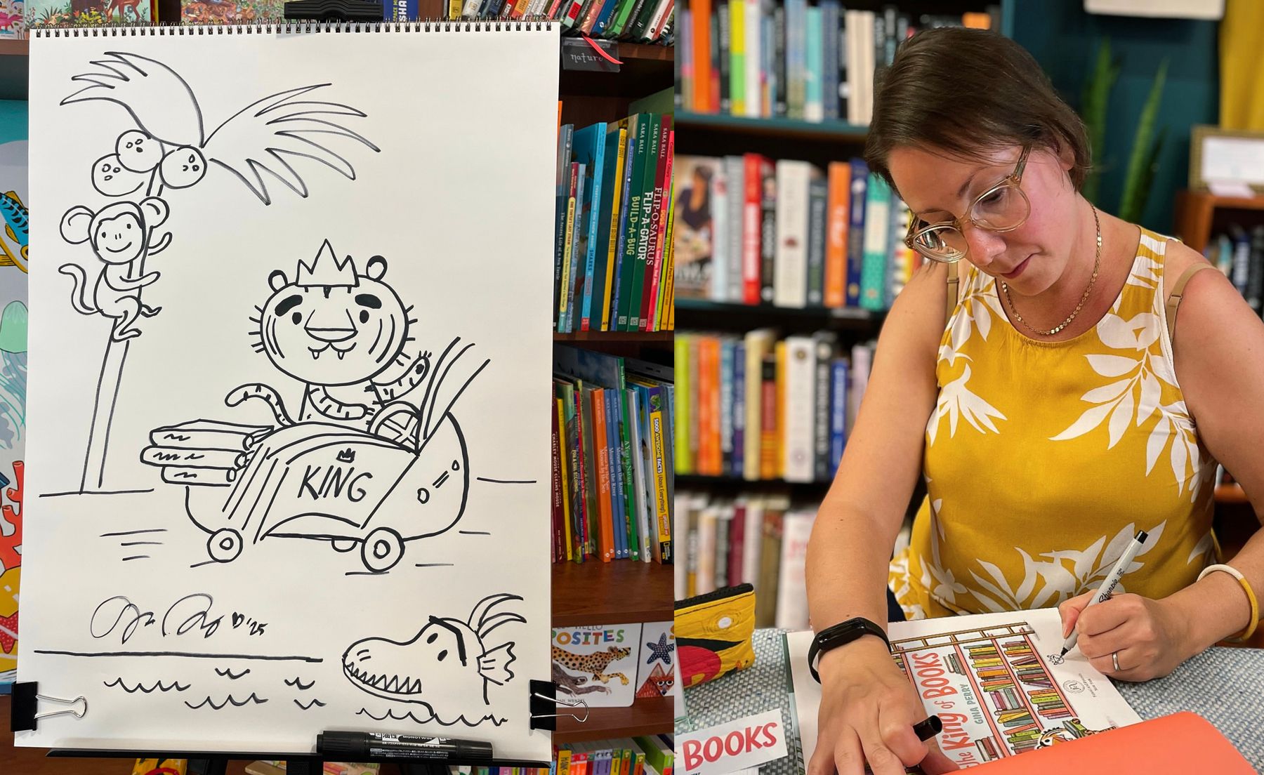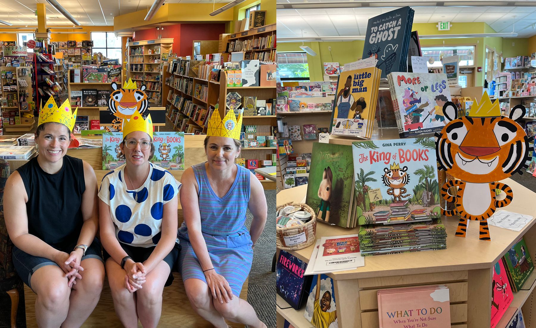 I hadn’t planned on doing so much in terms of THE KING OF BOOK events since summer events tend to be quieter, but I found myself running all around to bookstores and libraries. It was lovely to visit new stores and old, plus a few libraries. I had at least one child to read to at every event, which was my minimum metric for success. Bonus moments were good friends and family who came out to celebrate, and picking up a LOT of new picture books for myself. And for time hanging out signing books next to the register in the very small but charming Portsmouth Book Nook - I loved all the book chat! Plus the crown craft was a winner - see below for crowns in action!